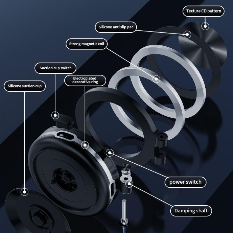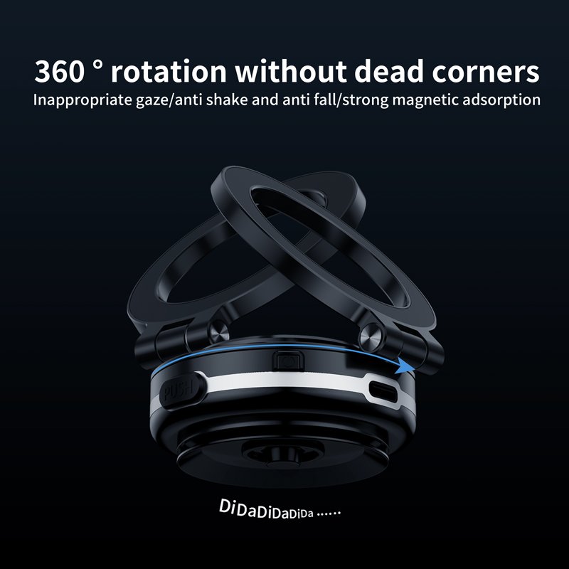 Ultra-thin electric magnetic rotating and folding stand, featuring a precise “click” rotation sound effect for stress relief, non-interfering with signals, with strong adsorption capability on various smooth surfaces, and comes with a complimentary magnetic attachment sheet.