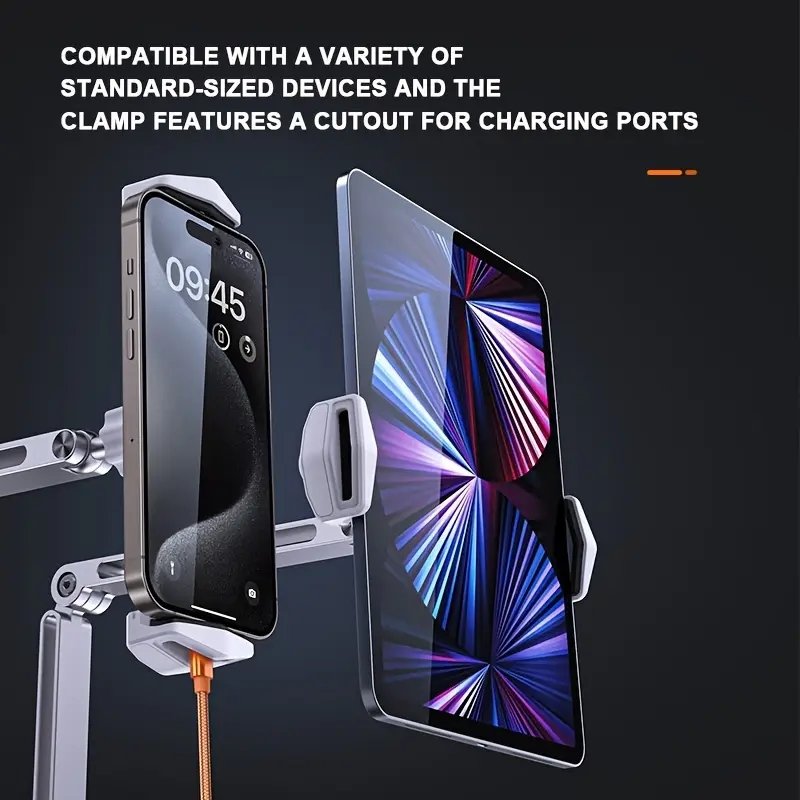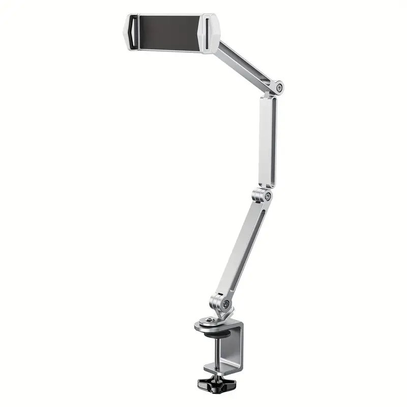 Top-quality Aluminum Golden Folding Hover Phone/tablet Stand, Precise Spring Clip, Multi-axis Linkage Adjustable Support Rod, Equipped With A Universal Ball To Meet Various Viewing Angles, Suitable For Various Scenarios Such As Bedside, Desktop, And Office.